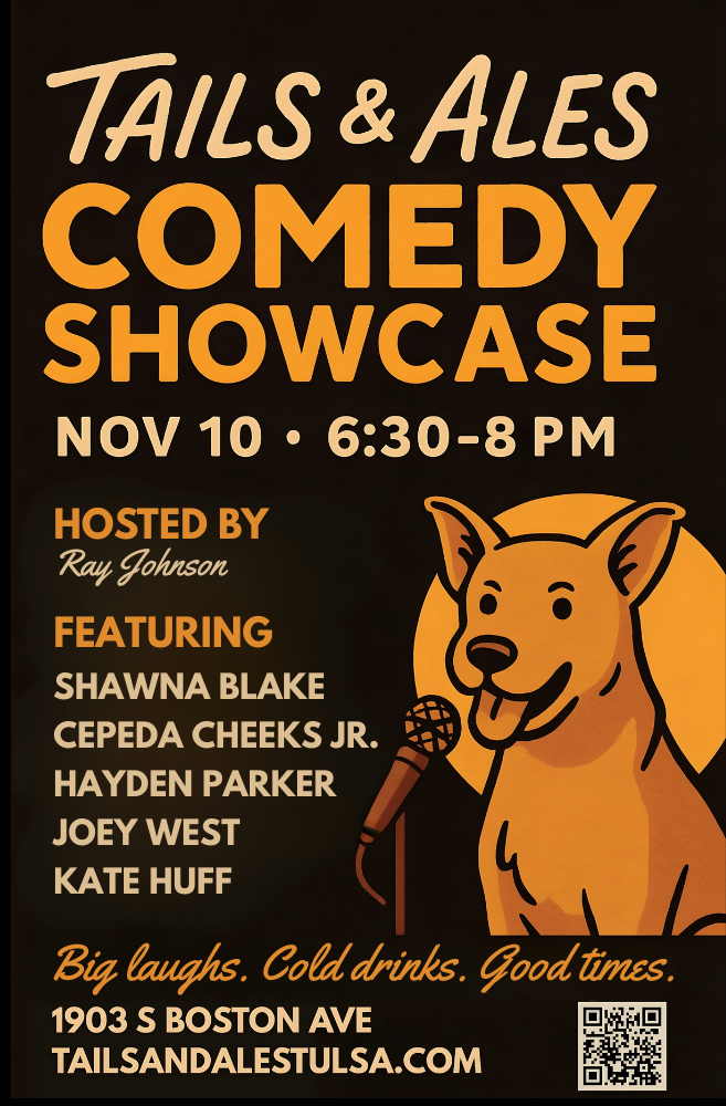 Get ready to laugh out loud at Tails & Ales! Join us for a night of stand-up featuring some of Tulsa’s funniest comics and special guests. Enjoy cold drinks and good times as we turn the patio into a full-on comedy club.